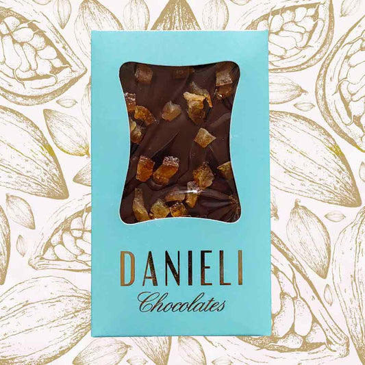 Dark Chocolate. Our rich dark chocolate bars with tempting toppings, including orange pieces, stem ginger, or whole hazelnuts.