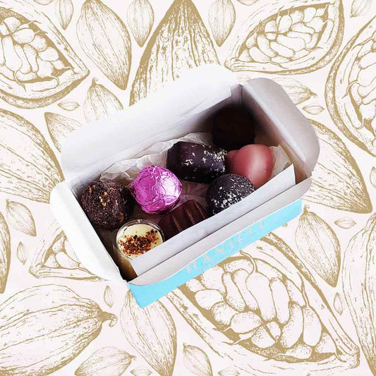 Our Mother's Day collection is filled with a considered mix of our own handmade truffles and Belgian chocolates, put together with care, including limited edition pieces chosen specially for the occasion.